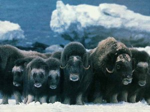 Arctic yaks stand shoulder to shoulder in a circle, with their young protected in the center, presenting a most formidable wall of hooves and horns to any would-be predator. Talk about a defensive front line!